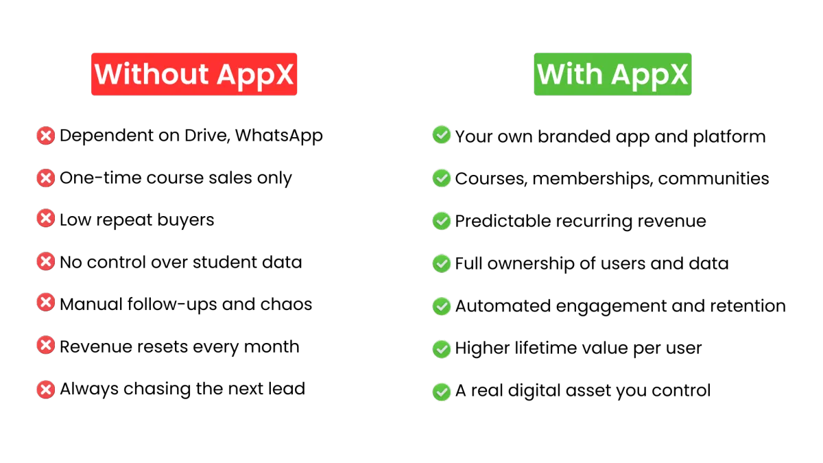 Unlike most platforms that lock you into annual renewals, AppX charges a one-time setup fee with no recurring platform costs.